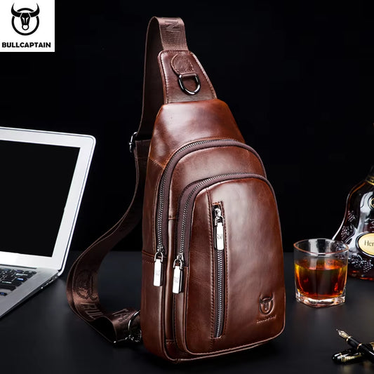 Men'S Genuine Leather Chest Bag Fashion Leisure Multifunctional Crossbody Bag Music Chest Bag Men'S Chest Bag